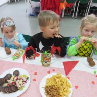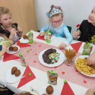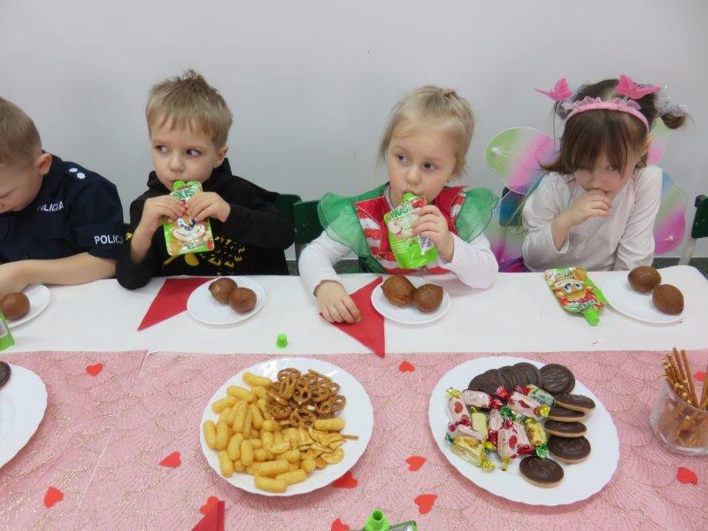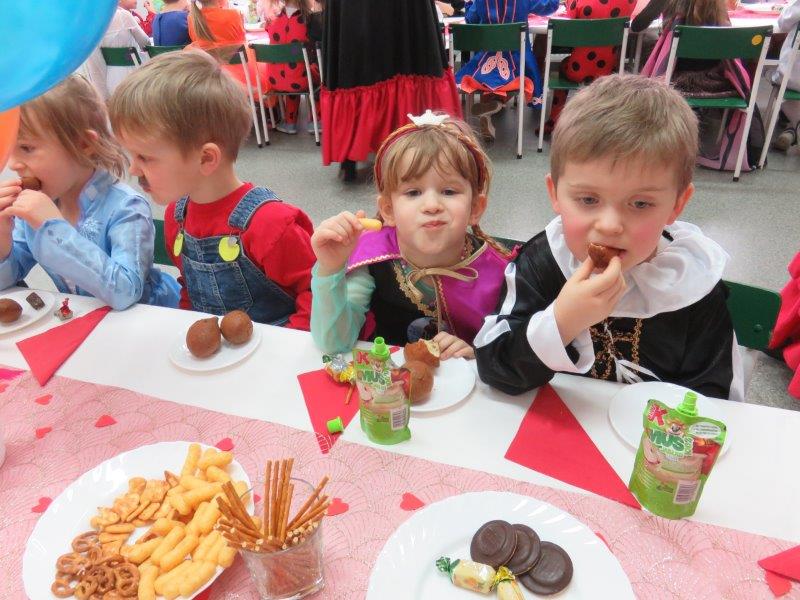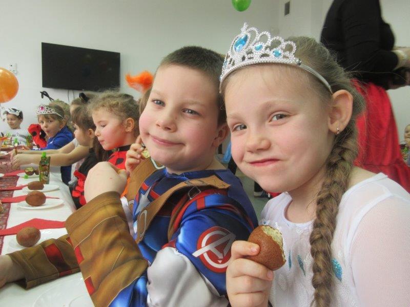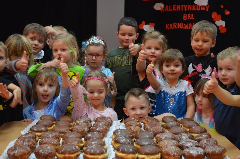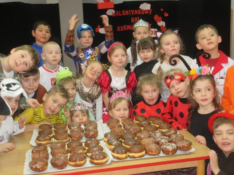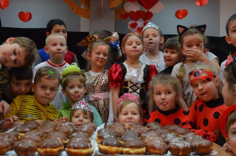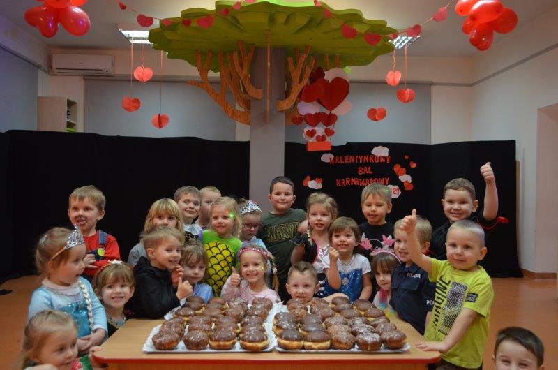 Walentynkowy Bal Karnawałowy był także okazją do kultywowania tradycji Tłustego Czwartku. Miłą niespodziankę wszystkim dzieciom sprawili rodzice i dziadkowie Soni i Filipa Orszulak właścicielom piekarni Olejnik Piotr Gryglicki,