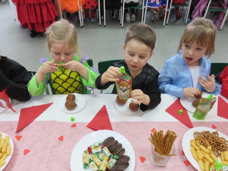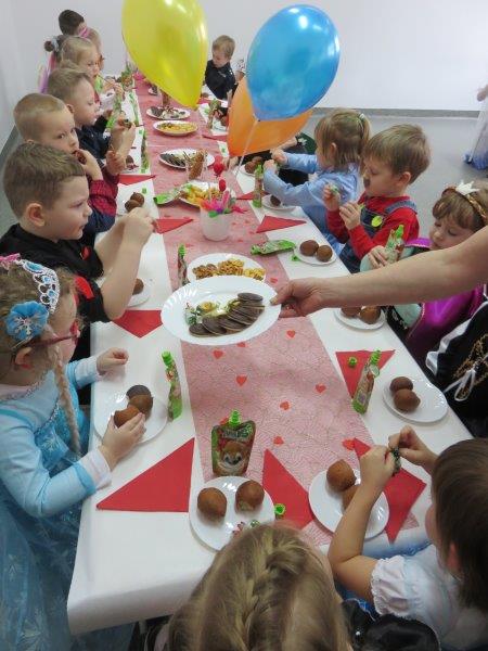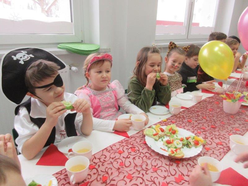 W czwartek 11 lutego wszystkie dzieci w wyśmienitych nastrojach przybyły do przedszkola przebrane w przeróżne postaci. Każdy przedszkolak wyróżniał się niezwykle pomysłowym i kolorowym strojem, wśród przybyłych można było dostrzec wiele bajkowych i zwierzęcych postaci. Na balu nie mogło zabraknąć konkursów i zabaw, które poprowadziły dyrektor i nauczycielki przedszkola przebrane za tancerki flamenco. Po wyczerpujących skocznych zabawach i pląsach w odświętnie udekorowanych salach czekał na dzieci poczęstunek przygotowany przez pracowników kuchni oraz słodki upominek przesłany przez Urząd Miejski w Gogolinie.